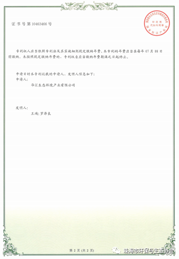 “华汇生态”拥有授权专利证书11份,审理中专利证书16份